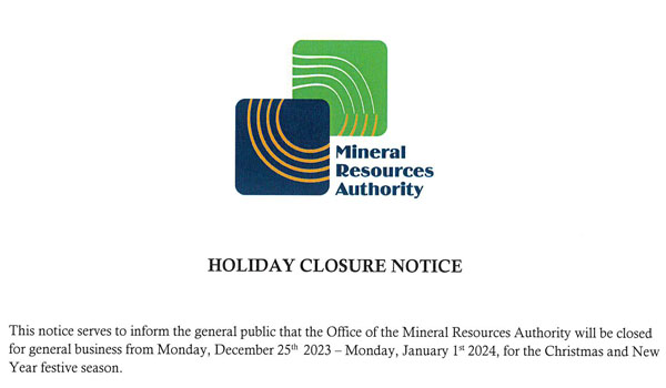 This notice serves to inform the general public that the Office of the Mineral Resources Authority will be closed for…