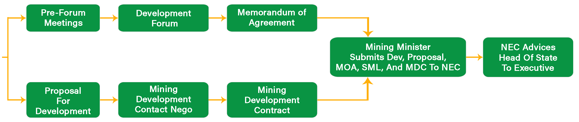 Pursuant to Part 1, Section 3 (3) of the Mining Act 1992 on “Consultation”, a development forum shall be convened by the Mining Minister. The purpose of the Development Forum is to consult and listen to the views of the people who will be affected by the grant of the SML. The Minister shall invite to a development forum such persons as he considers will fairly represent the views of